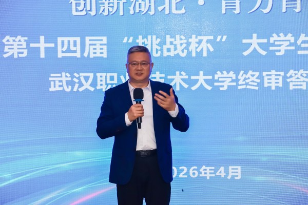 新闻网讯(通讯员 杨舒情 摄影 张马涛 周心怡 刘杰)4月9日下午,湖北省第十四届“挑战杯”大学生创业计划竞赛武汉职业技术大学校赛终审答辩会在凌峰楼C11报告厅举行。18个项目从347个初赛项目中脱颖而出,展开最终角逐。答辩会由校团委主办,建筑工程学院分团委承办。副校长刁元斌出席活动,与200余名师生代表一同观摩答辩。