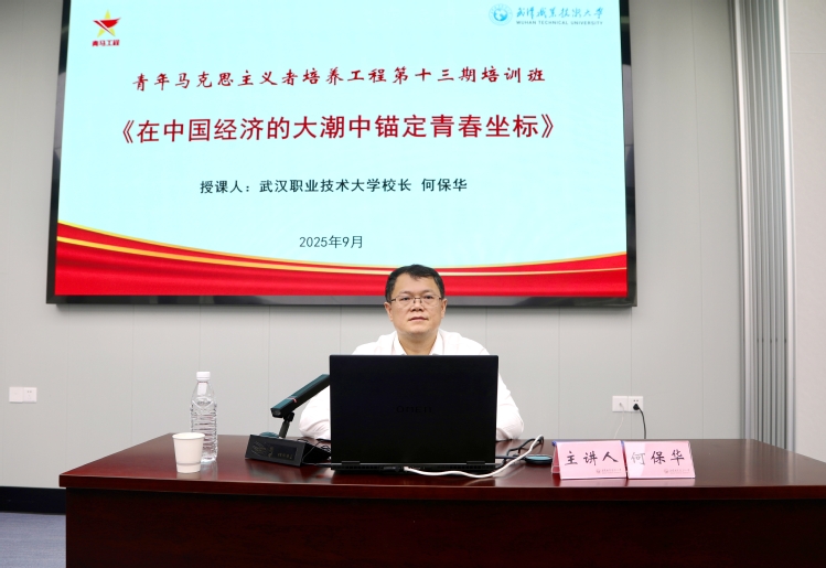 培训班创新采用数字化教学模式,打破空间壁垒,与中国人民大学团委书记熊宇平连线互动,围绕新时代青年马克思主义者的成长成才路径深入探讨,共绘青春行动宣言。同时,特邀湖北工业大学教授陈启祥、武汉生物工程学院团委书记米红秋,分别以《“两弹一星”历程及其精神》《青春向党 奋力书写新时代青年的成长答卷》为题开展专题授课,传承红色基因、凝聚奋进力量。校内骨干力量同步发力,党委宣传部部长喻长春、马克思主义学院青年教师郭英东分别聚焦文化育人、青春使命等主题展开深度辅导,引导学员学深悟透党的创新理论。此外,“校友面对面”环节中,优秀校友尹爱军分享跨界创业的奋斗经历,以榜样力量激励学员脚踏实地、逐梦前行。