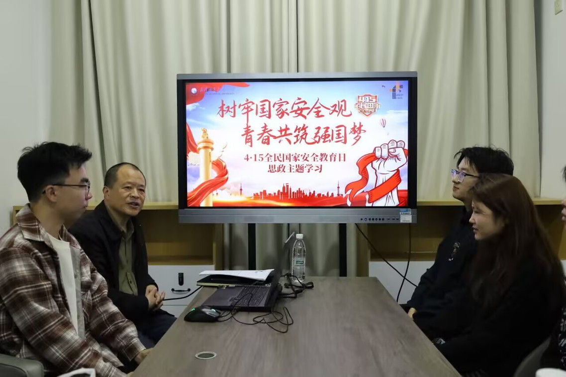 4月15日国家安全日当天,学院充分发挥文化传媒专业优势,宣传屏循环播放安全宣传素材,以鲜活直观的画面传递安全知识。时尚与传媒学院党委副书记邱文成走进学生一站式社区,开展专题宣讲,结合专业特色诠释守护国家安全的责任与担当,引导学子以青春行动践行安全使命。