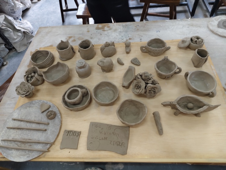 菱纹茶杯精致简约,猫耳马克杯萌态可掬,还有透着古朴气息的酒盏、土罐、双耳碗……一件件创意陶艺作品虽略显稚嫩,却满是自由创作的灵气。在揉捏拉塑的节奏里,留学生们感受了陶土的温润,也体悟到中华陶瓷艺术厚重洒脱的文化底蕴。