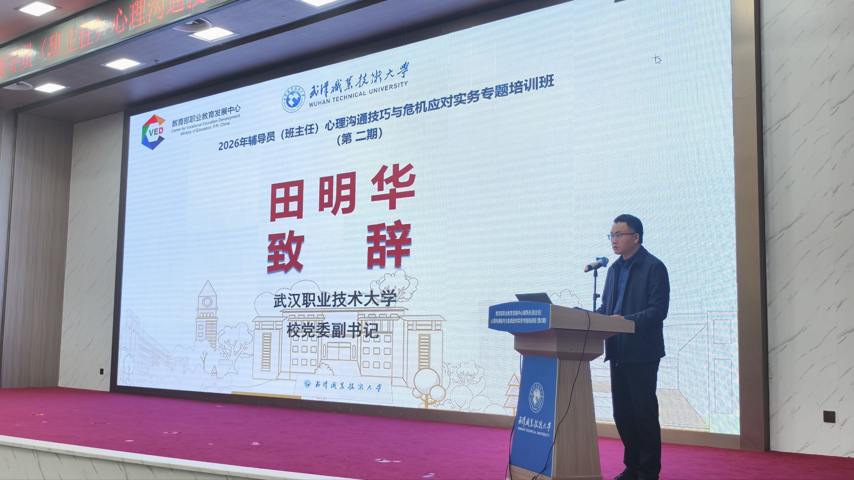 本次培训是武汉职业技术大学继2025年首期成功办班后的优化升级,立足职业院校心理健康工作实际,构建“实务操作 + 数智应用 + 风险防控”三维课程体系,聚焦心理危机处置痛点难点,打造“直击痛点、拿来就用、学完能用”的精品培训,着力提升辅导员心理育人专业能力和实践水平。