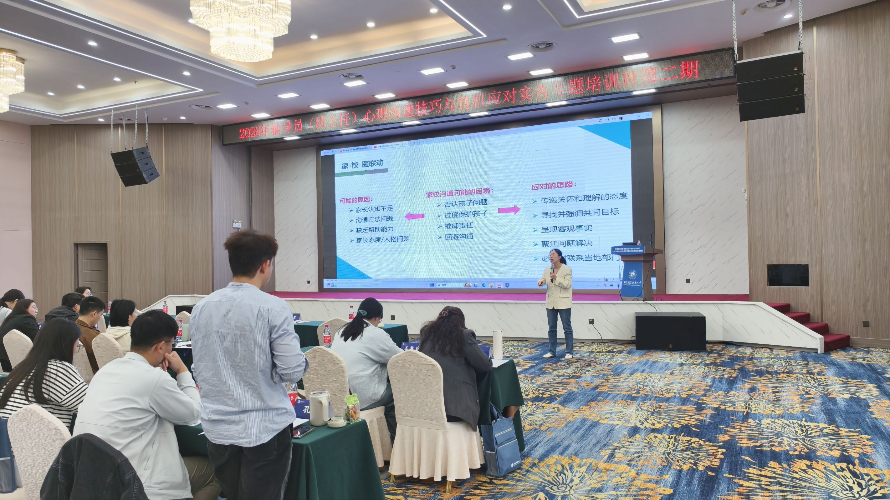 于丽霞副教授聚焦谈心谈话技巧与沟通策略,以情景模拟、对话复盘等互动形式,向学员传授捕捉心理危机信号、打开学生心扉的实用方法,帮助学员将风险化解于萌芽状态。