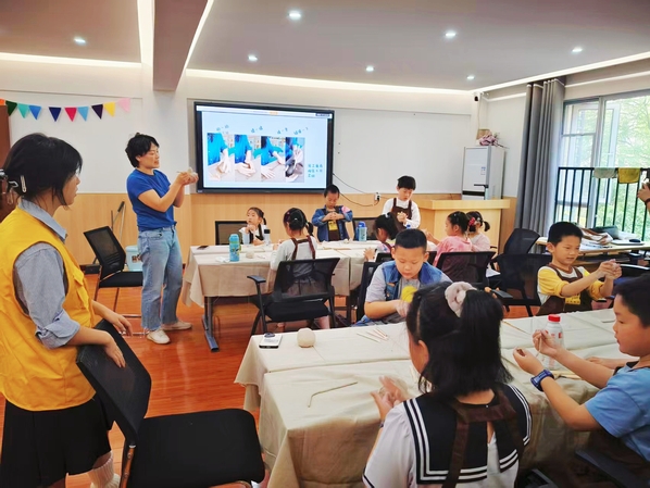 陈岚老师则和志愿者们分组陪伴、手把手指导,在揉泥力度、造型细节上及时提醒,让每个孩子都能尽兴体验、学有所得。