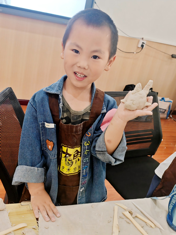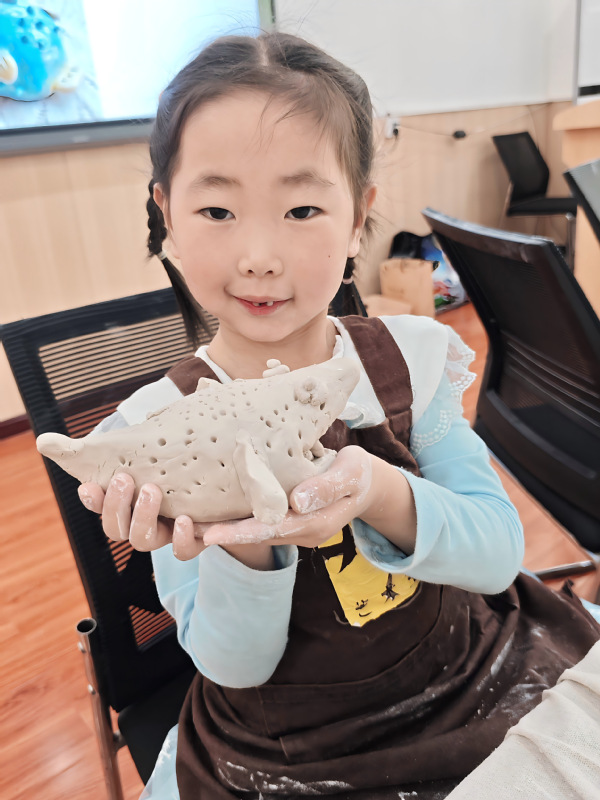 现场的小朋友们听得格外认真,纷纷拿起陶泥开启创作。有的专心打磨圆润的鱼身,有的自由发挥,给小鱼添上夸张的尾巴和灵动的眼睛,一举一动都透着专注与欢喜。