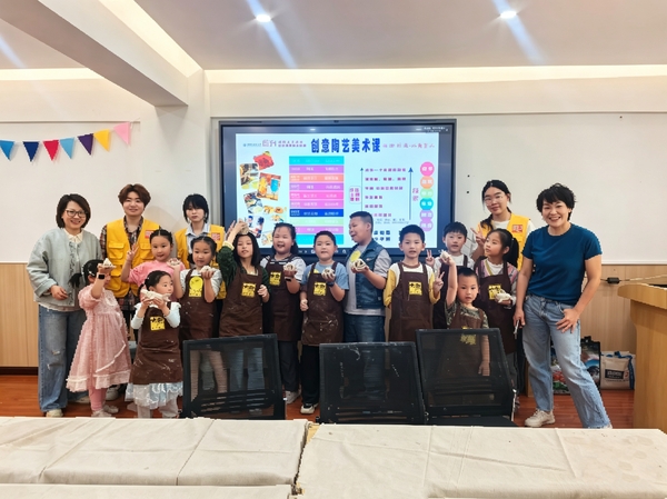 这是武汉职业技术大学艺术设计学院“青年夜校”走进藏龙社区,开展少儿创意陶艺公益课的现场。陈岚、成锟两位老师带领志愿者化身 “魔法匠人”,让孩子们的奇思妙想与陶泥尽情碰撞,用一团普通的泥土,玩出了大大的创意。