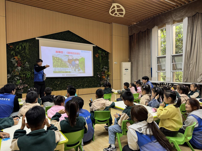 书香共读环节,志愿者陪伴孩子们品读《小英雄雨来》《雷锋的故事》等红色绘本,通过情景讲述、互动问答、角色扮演等形式,带领孩子们重温红色故事、感悟榜样力量。“我要向雷锋叔叔学习,做一个乐于助人的好孩子。”五岁的朵朵主动起身,大方分享自己的阅读感悟。
