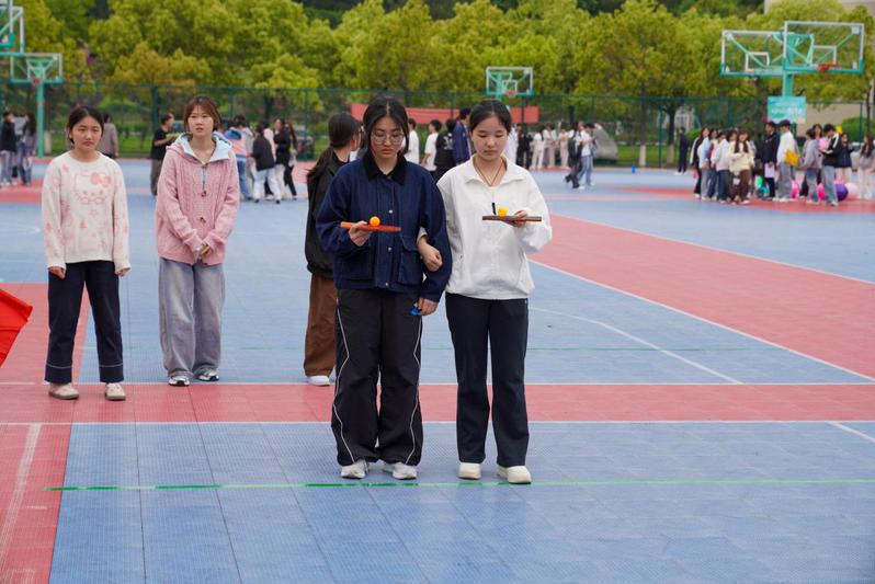 随着现场裁判发令,赛事全面开启。赛场上,10支代表队同心同向、奋勇争先,比拼氛围热烈浓厚。波涛汹涌项目中,队员紧密牵手、高效衔接,快速传递器械,默契配合凝聚同心力量;旋风奔跑、五人六足赛道上,大家口号整齐、步调统一,并肩前行、同向冲刺;心心相印比拼环节里,参赛搭档背夹球体、稳步前行,彼此信任扶持、配合默契十足;珠行万里、踏石过河侧重考验耐心定力与协同能力,学子们沉着冷静、稳扎稳打,有序衔接完成全部挑战;牵手托球接力赛全程节奏平稳,全队携手并进、衔接顺畅,全力展现过硬团队素养。赛场边,师生驻足观赛、加油鼓劲,呐喊声、喝彩声、欢笑声接连不断,现场洋溢团结向上、活力满满的校园青春气息。