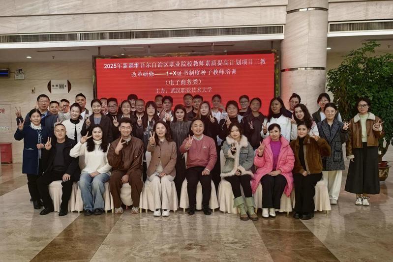 12月20日,由武汉职业技术大学承办的“2025年新疆维吾尔自治区职业院校教师素质提高计划项目——1+X证书制度种子教师培训(电子商务类)”圆满落幕。来自新疆维吾尔自治区31所职业院校的33名骨干教师参加为期四周的集中研修,在理论素养、专业技能与产业实践等方面得到了系统化提升。