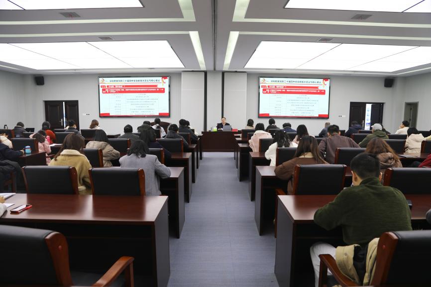 12月26日上午,校党委书记鄢烈洲在逸云楼116会议室讲授“深学细悟党的二十届四中全会精神持之以恒推进全面从严治党”专题党课。马克思主义学院、社会职业与职业教育研究院(学报编辑部)、旅游与航空服务学院等单位共计70人参与学习。
