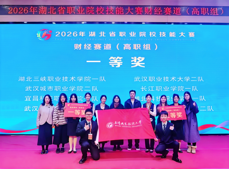 近日,2026 年湖北省职业院校技能大赛财经赛道(高职组)结果揭晓。武汉职业技术大学商学院选派2支代表队,与来自全省48所高职院校的81支参赛队伍同台竞技,最终斩获一等奖、二等奖各1项,彰显了学校财经类专业人才培养水平与师生精神风貌。