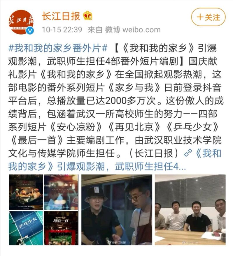 【长江日报】《我和我的家乡》引爆观影潮,武职师生担任4部番外短片编剧